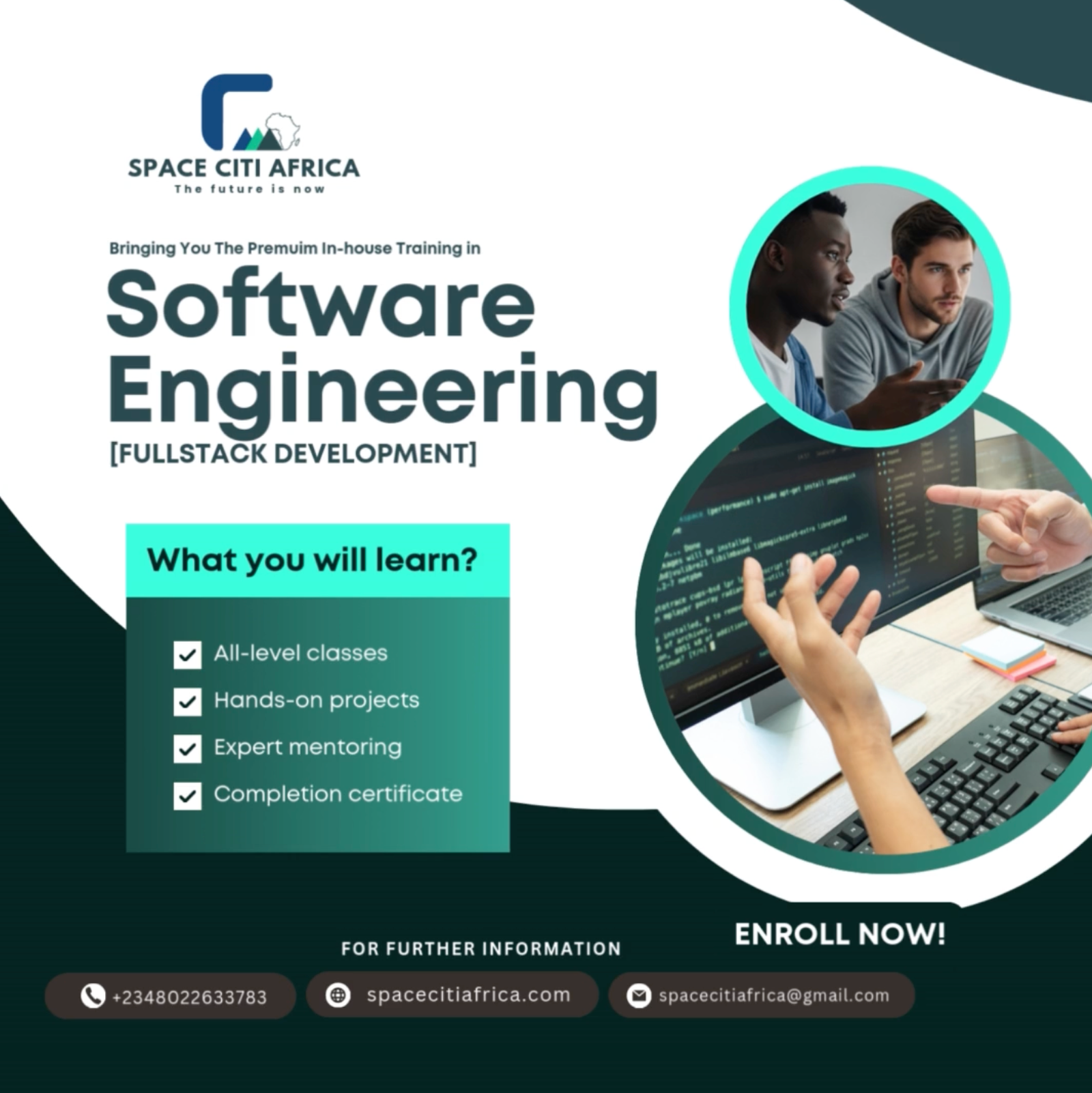 Space Citi Africa is an information technology company dedicated to shaping the next generation of African innovators. Through high-quality tech education, immersive training, and career pathways, we bridge the gap between ambition and opportunity.